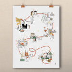 L’idée de ce service est de vous proposer la création d’une illustration personnalisée, entièrement basée sur vos moments de vie et vos souvenirs. Comme il s’agit d’un service sur mesure, merci de prendre en compte un délai minimum de 20 jours pour la réalisation de votre dessin, à compter du moment où vous m’avez envoyé vos éléments et photos.